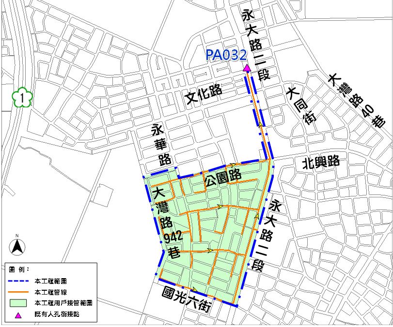 水利局表示,113年5月啟動永康區第二期「PA分區管線及用戶接管工程第一標」及「PB分區管線及用戶接管工程第一標」,預計至115年可完成6,796戶的接管數,截至113年7月,永康污水系統累計已完成24,462的接管戶數。本次工程為PA分區第二標,已於113年6月11日完成發包作業,預計8月中旬開工,工程範圍包括永大路二段以西、公園路以南、大灣路942巷以東及國光六街以北的區域,預估到115年底可望完成約5.36公里的污水管線佈設,以及約1,731戶的用戶接管。