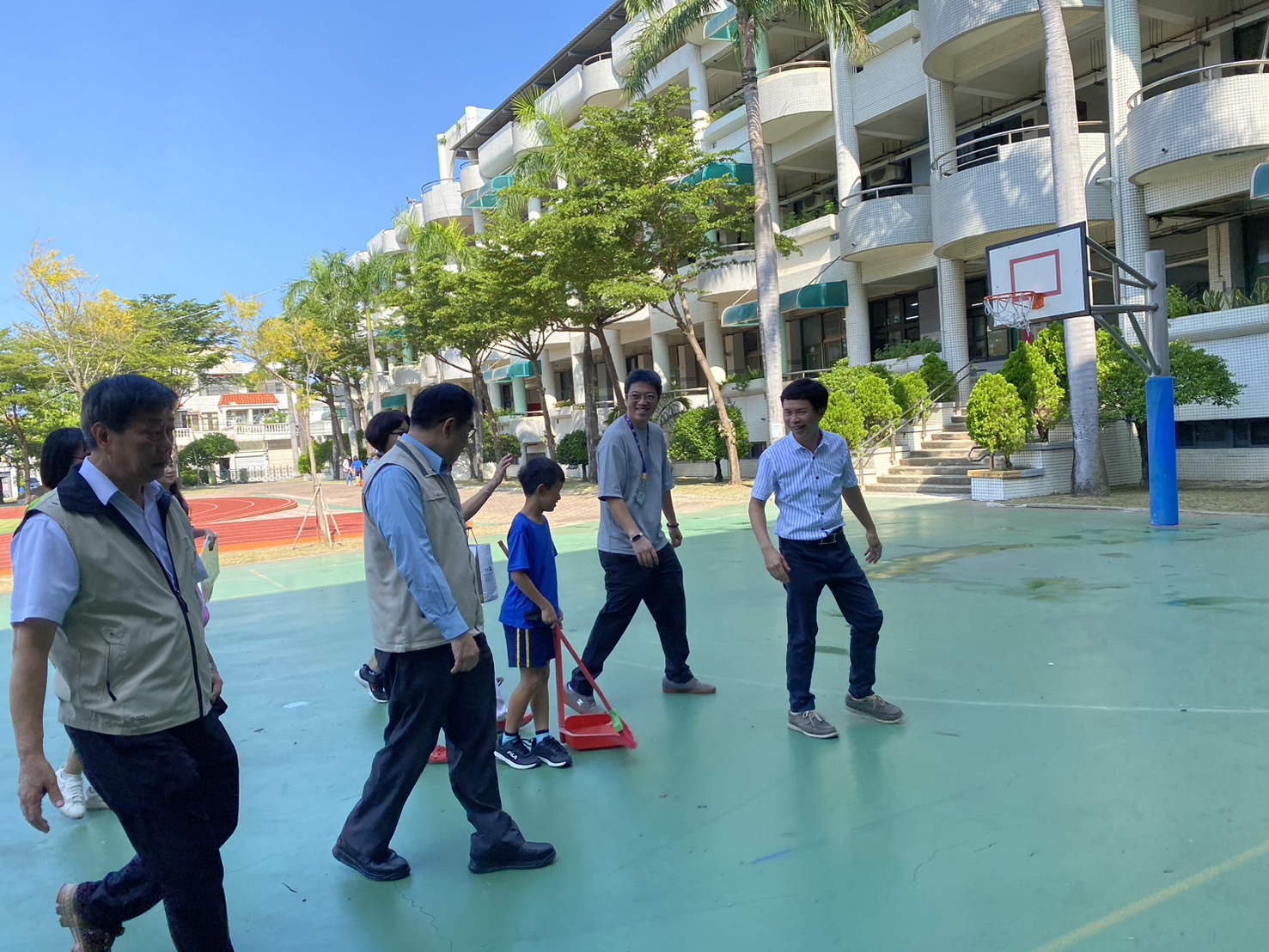 教育局長鄭新輝表示,校園防疫無假期,暑假期間各校仍持續進行環境清潔工作,落實「巡、倒、清、刷」防疫基本功,尤其受到凱米颱風豪雨威脅,展現行動力,動員師生與志工立即恢復校容,市府也補助臺南市國中小登革熱防疫物資整備經費387萬元,並督責各校開學前,務必完成校園環境清潔消毒工作,極力防堵登革熱疫情。