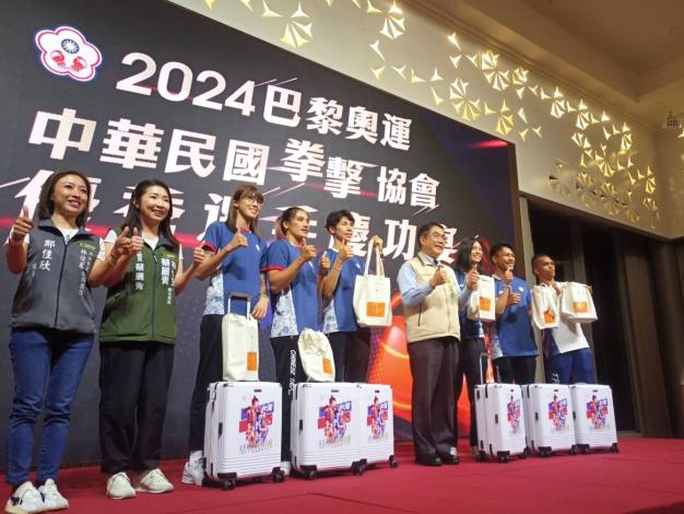 • 1130827體育局-2024巴黎奧運中華民國拳擊協會優秀選手慶功宴 市長黃偉哲致贈選手行李箱