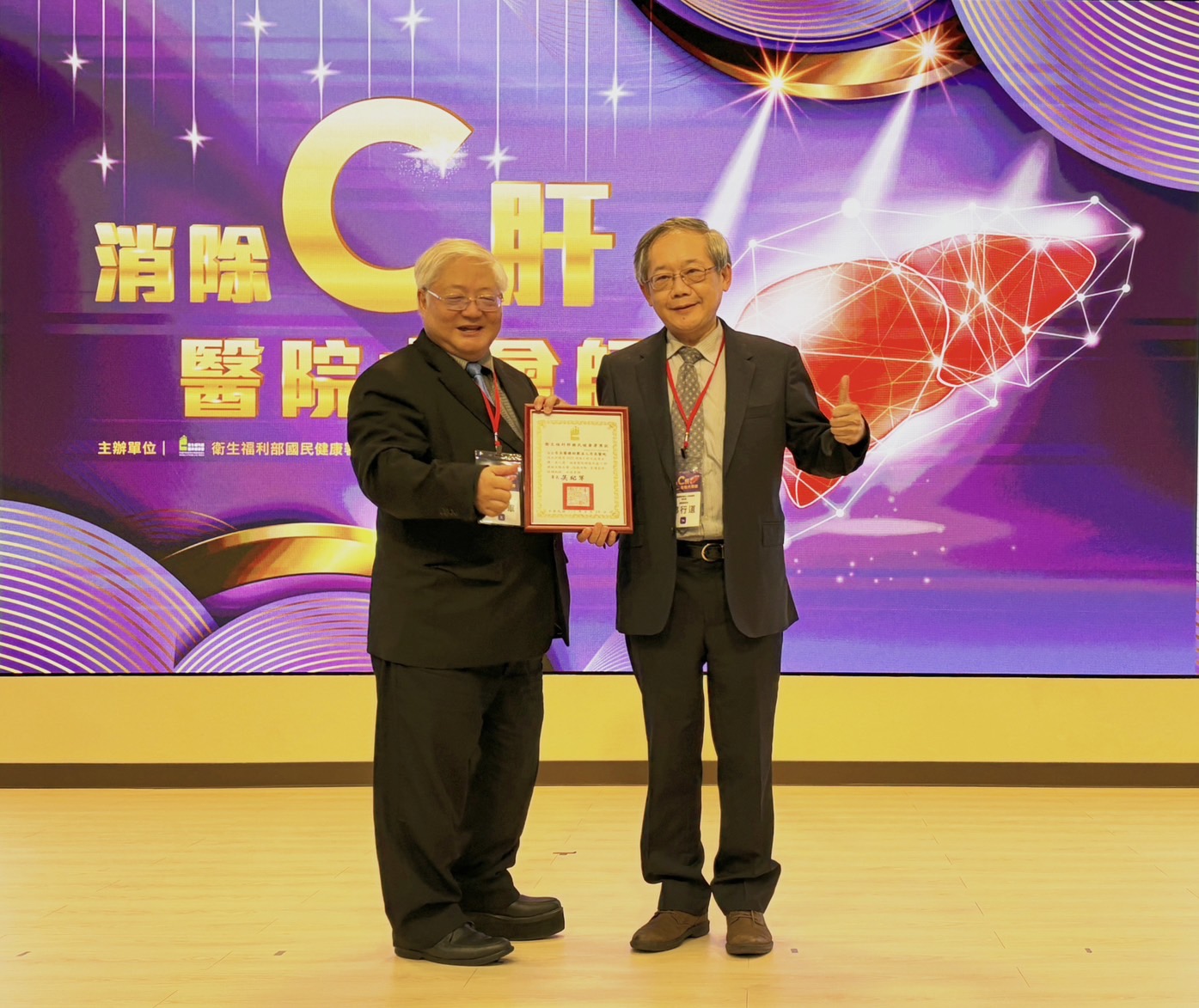 為凝聚全國健康醫院網絡會員共同推動C型肝炎防治工作,衛生福利部國民健康署藉財團法人張榮發基金會國際會議中心隆重舉辦「健康醫院網絡串連 C肝篩檢主動出擊」評比活動頒獎典禮,本市由國立成功大學醫學院附設醫院、奇美醫療財團法人奇美醫院、台南市立醫院及衛生福利部臺南醫院新化分院四家醫院榮獲殊榮,其中衛生福利部臺南醫院新化分院更是勇奪全國地區醫院組「人氣第一名」。