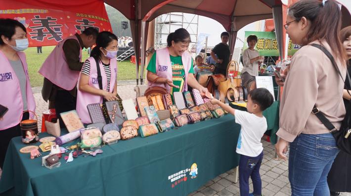 本次職訓成果展有伽碩企業有限公司附設職業訓練中心「植物栽培暨景觀設計培訓班」、訊亞企業股份有限公司「皮雕工藝技術培訓班」、社團法人中華民國產業永續發展策進會「服飾布藝創意縫製培訓班」及大台南芳薰香植物精油服務人員職業工會「美容美體芳療實務班」等4個訓練單位參與,現場義賣園藝植栽、皮夾、皮包、布包、服飾並提供肩頸舒壓按摩服務。