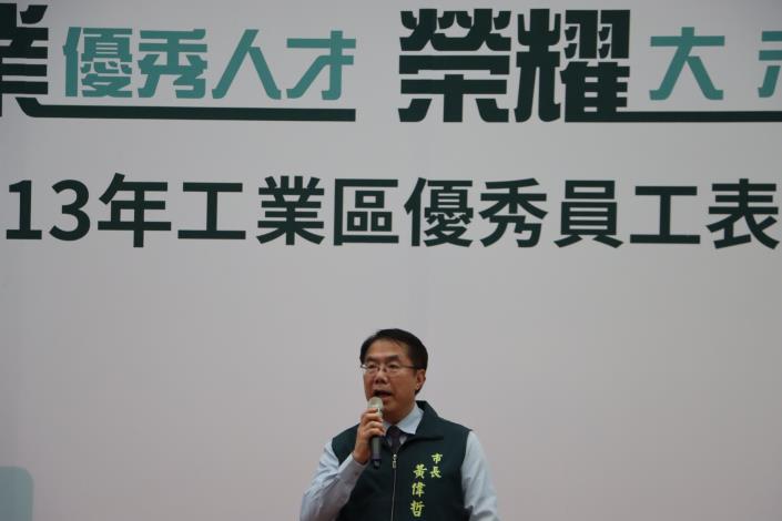 臺南市政府今(18)日於永華市政中心2樓中庭舉行113年臺南市工業區優秀員工表揚,臺南市黃偉哲市長出席時感謝本次得獎的績優管理人員及績優從業人員,因為有他們的努力,創造臺南經濟的繁榮。