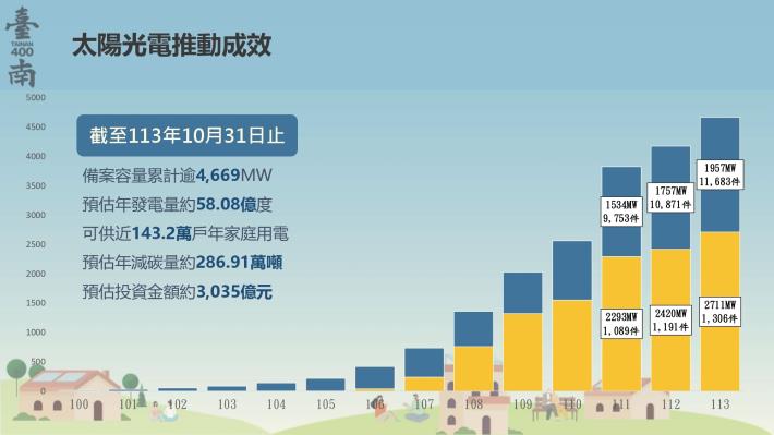 經濟發展局表示,除了總設置容量達到4.6GW的綠電,本市將配合賴總統二次能源轉型政策,發展氫能、生質能等多元綠電,讓企業在臺南投資也能兼顧ESG與RE100;供水方面,臺南3座主要水庫每日供應100萬噸自來水,3座已完工或興建中之再生水廠,預計115年每日可提供9萬噸,興建中的海淡廠預計117年底完成第一期產水每日10萬噸,臺南充沛與穩定供應的水電,為企業創造友善生產環境,歡迎國內外優質企業投資,一同為臺南經濟注入新動力。招商投資單一窗口服務專線0800-067-795。