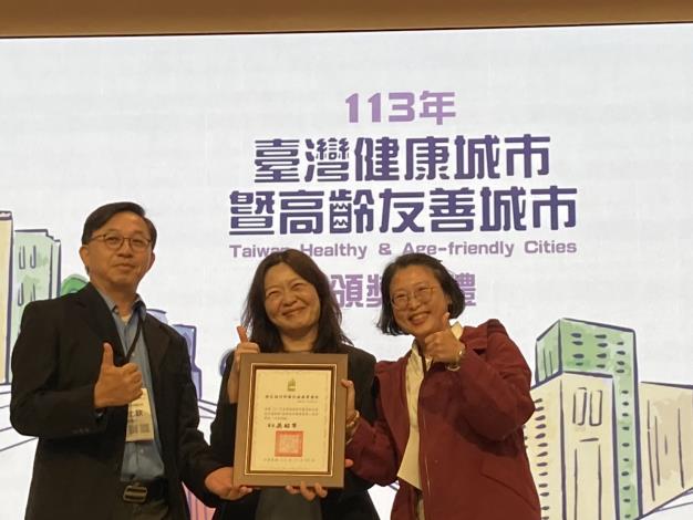 衛生福利部國民健康署為展現全國縣市政府推動「健康城市暨高齡友善城市」成果,於11月22日下午假財團法人張榮發基金會國際會議中心11樓舉辦「113年度台灣健康城市暨高齡友善城市海報獎頒獎典禮」。臺南市政府由副市長趙卿惠率領團隊領獎,臺南市政府今年計投稿16件,4件進入現場海報展示階段,歷經書面初審、展示複審及口頭解說,共計獲獎4件;此屆本市獲獎獎項囊括健康城市-勞工局「勞僱安心,移家移居」(銅獎)、工務局「月津童遊-鹽水特色公園」(優等)、水利局「鹽水月津,風華再現」(佳作獎)及白河區公所「最美花道好𨑨迌~歡迎你來迺街路」(佳作獎)等3局1所榮獲4件海報獎。