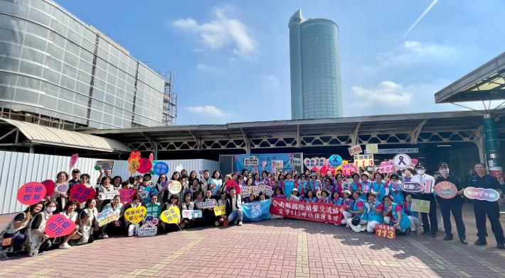 為響應11月25日「國際終止婦女受暴日」,南市社會局攜手防暴組織及防暴宣講師進行創意宣導,今(25)日與國際蘭馨交流協會共同於臺南火車站舉辦了一場別開生面的快閃活動,透過全國連線共同誓師與防暴直播宣導,喚起社會大眾對婦女受暴問題的關注,社會局陳雅芬主任秘書代表盧禹璁局長出席,與200多位民眾共同響應,北區區長潘寶淑、巿議員曾培雅、林冠維、陳怡珍本人均到場參與,身兼社區防暴宣講師的北區元美里長侯喬蓁也共襄盛舉,現場分享家庭暴力及性別暴力防治概念。