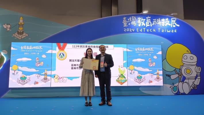 臺南市教育局推動教師數位增能研習扎根有成,透過數位科技翻轉傳統學 習型態,並與各學習平台合作,重視學生學習歷程,有效提升教師教學效率及學生學習效能,南市教師在參與數位增能研習後,運用多元且靈活的方式詮釋資訊素養與倫理意涵,在教育部「資訊素養與倫理」創意教案徵選大放異彩,奪下2件特優與全國最多獲獎縣市,顯示臺南市教師已能將資訊素養的知識內化並轉化為切合學生需求的教學設計,更展現出數位素養教育領域的創意與實力。