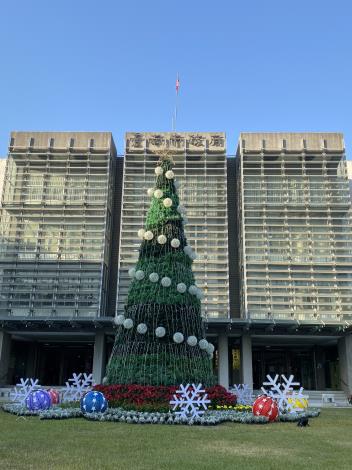 秘書處表示,今年在民治市政廣場上佈置了8.5公尺高的耶誕樹藝術裝置,主題為「星光耀瀛」,比去年足足增加2公尺的高度,看起來更具氣勢。每一個環節的花藝佈置,都具有不同的意義,其中耶誕樹象徵著希望與團結,彩球代表市府推動政令的多元與活力,以銀葉菊950棵佈置出的雪花造型,更增添了冬日浪漫的氛圍,透過這些耶誕元素、幾何圖形以萬壽菊、矮牽牛及一串紅等花卉,打造出一個富有創意與節慶氣氛的公共空間。只要市民朋友來到市民廣場,就能感受到冬日過節的溫暖與魅力。