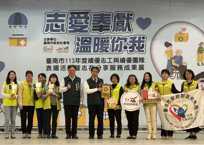 臺南市政府財政稅務局志工以熱忱、高效率高品質的服務,深獲民眾的肯定,今(113)年再度榮獲臺南市志願服務績優局處殊榮,臺南市政府於11月30日假臺南市勞工育樂中心舉辦盛大的頒獎典禮,市長黃偉哲親自出席感謝全體志工無私奉獻,場面溫馨且隆重,讓受表揚者深表榮耀。