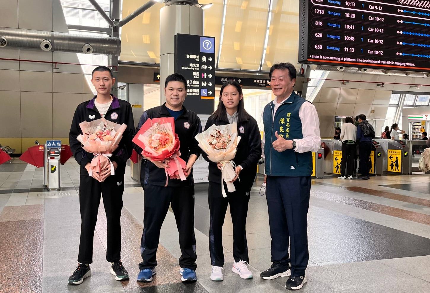 黃偉哲市長表示,本次世界青少年桌球錦標賽表現亮眼,其中陳忞昕就獲得女子雙打金牌、單打銅牌、女子團體銀牌、男女混雙銅牌等四項獎項,而男子選手鄭旻修則在男子團體中獲得銅牌,表現優異,此次出國參賽陣中包含教練教練黃聖盛,吳志祺、U19的郭冠宏、U15的鄭旻修、陳忞昕都是出生自臺南的桌球好手,第一時間也立刻指派體育局聯繫教練張貼紅榜祝賀。同時也於今日回國後,由臺南市體育局陳良乾局長至高鐵迎接選手回國。