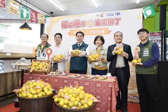 臺南柳丁酸甜可口、果肉細緻,2023年種植面積高達1731公頃,產量47,635公噸,為全台第一,臺南柳丁種植面積前3名分別為六甲區(面積504公頃)、白河區(面積382公頃)、東山區(面積372公頃)。為了讓更多人看見臺南在地的優質柳丁,臺南市政府農業局今(2)日於家樂福超市臺南裕農店辦理「柑甜橙市 臺南柳丁」家樂福上市記者會,這次與家樂福攜手合作推廣臺南優質柳丁,將在全台家樂福和量販店進行促銷活動,滿足各地民眾的採買需求,讓國人就近就能品嚐到新鮮酸甜美味的臺南柳丁。