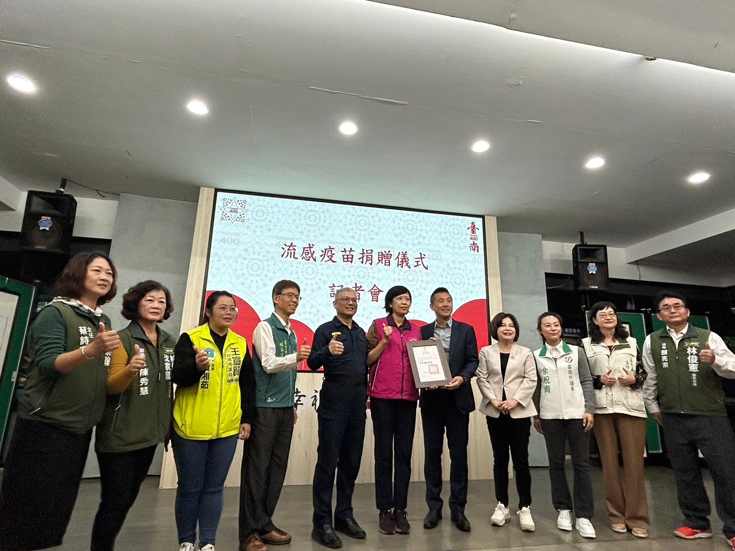 臺南市政府衛生局今(12/3)日舉行流感疫苗捐贈儀式記者會,特別頒發感謝狀,感謝兆笙資產管理顧問股份有限公司慷慨捐贈2,000劑流感疫苗,展現企業回饋社會的善行與責任感。這批捐贈疫苗將提供非公費疫苗補助範圍內之第一線警員、協勤民力及托育機構行政人員等接種,進一步提升第一線人員的群體保護力。