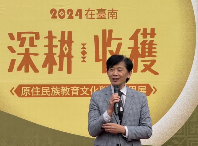 為凝聚與傳承原住民族文化力量,臺南市政府原住民族事務委員會攜手臺南市立圖書館,於12月8日(星期日)下午2時15分在新總館西側廣場隆重舉辦「113年度年終施政成果記者會」及「2024深耕·收穫在臺南—原住民族教育文化聯合成果展」,臺南市副市長葉澤山、臺南市政府原住民族事務委員會主任委員白惠蘭Salau Kaljimuran、盧縣一立法委員及穎艾達利議員蒞臨現場。