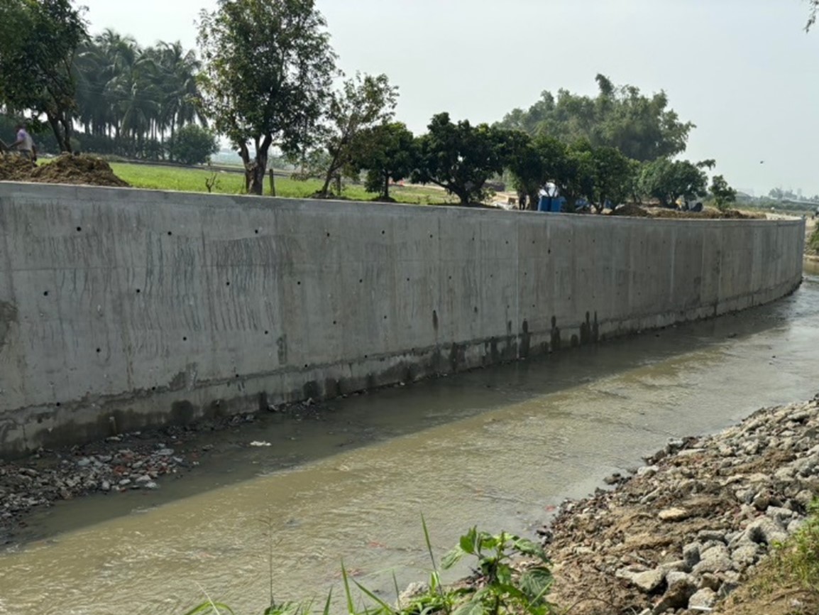 水利局補充,原計劃進行100公尺護岸改建,惟經施工廠商進場施工後,發現護岸損壞範圍有持續擴大趨勢,原核列經費無法完成損壞段改善工程,經黃市長指示由本府自行籌編550萬元再辦理40公尺護岸改建,總計投入約2,085萬元將140公尺之既有重力式護岸改建為高度5.8公尺之懸臂式護岸,經水利局督促施工廠商積極趕辦,工程已提早於113年10月31日完工,打造更為安全堅實的防洪護岸,恢復烏鬼厝溪排水防洪功能,守護民眾生命財產安全。