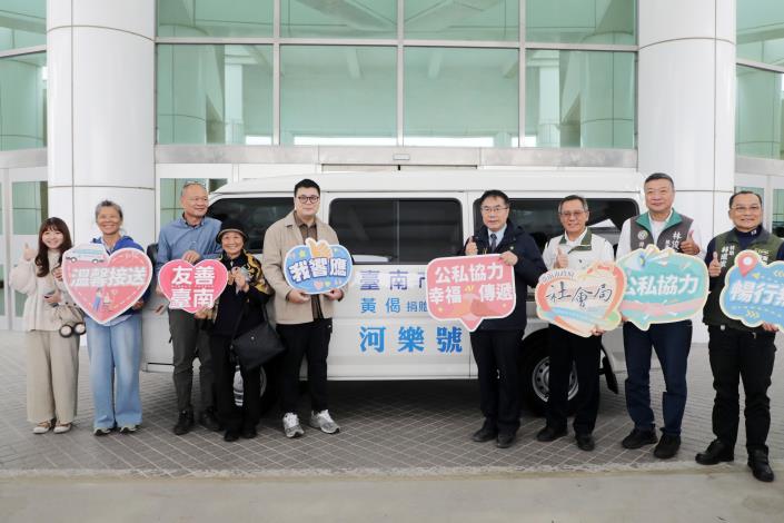 為響應臺南市照顧弱勢優先的施政理念,黃偈先生於今(7)日捐贈1輛復康巴士,於臺南市政府永華市政中心舉辦捐贈儀式,黃偉哲市長率社會局葉誌明副局長親自出席代表接受,並回贈感謝狀;林俊憲立委、周嘉韋議員服務處代表也到場關心致意。