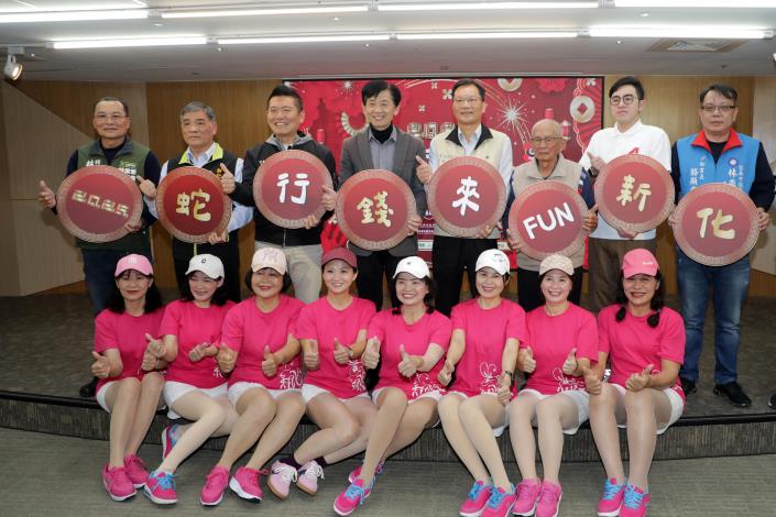 2025歡慶臺南年-新化年貨大街活動於今(13)日在永華市政中心新聞發佈室舉辦活動記者會,由新化在地扶桑花舞團帶來精彩開場表演,新化年貨大街將於1月17日至1月22日於新化老街及大目降廣場周邊熱鬧登場,帶給大家六天的精彩饗宴,今年主題為「蛇行錢來 、FUN新化」,主打「放心買、放心玩、FUN心抽」,邀請大家來新化買年貨,好運金蛇年,一起FUN。