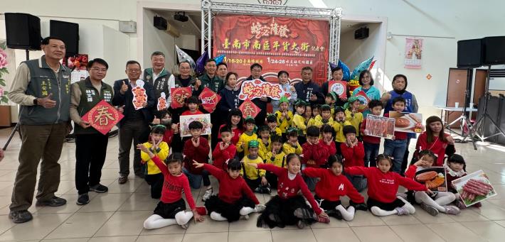 南區2025眷村年貨大街活動記者會今(13)日由市長黃偉哲偕同區長蕭琇華、新生里長王安國、明德里長陳瑞華等貴賓主持,今年特地將新生里辦公處「臺南眷村年貨大街」及明德里辦公處「水交社文化季暨眷村年貨大街」兩大活動串聯擴大舉辦,讓民眾在活動中體驗昔日生活的溫暖情感,一舉手一投足之間都在訴說著生活的故事,傳遞家的溫度與團圓的意義。
