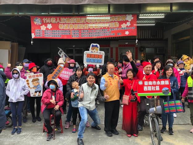 黃偉哲市長致力營造臺南為扶老攜幼的宜居城市,積極推動長幼世代融合,社會局秉持市長理念推動社區世代共融,在迎接農曆新年之際,永康區西灣社區發展協會於今(29)日大年初一上午假永康西灣舊街坊暨新社區辦理「114年老人防搶防騙反毒宣導暨蛇來運轉希望春節踩街尋親拜年活動」,相約150名社區老少親子走踏社區攜手踩街,向各親眷拜年問賀,並宣導防搶防騙資訊,歡度溫馨安心的農曆春節。