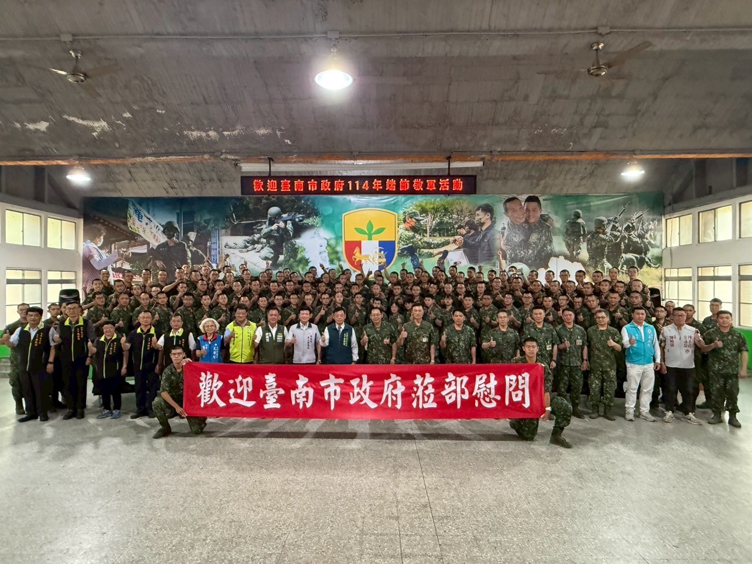 【記者郭忠淵/台南報導】 端午佳節前夕,台南市政府為表達對國軍的感謝與敬意,由民政局長姜淋煌代表巿長率敬軍團前往陸軍步兵第二○三旅進行勞軍活動,提前向官兵祝賀佳節愉快。隨行成員包括立法委員郭國文、陳亭妃、市議員陳秋宏、吳通龍、尤榮智之服務團隊,以及台南市軍人服務站站長劉可雲、官田區長洪聰發、鹽水區長陳文琪、新市區長張榮哲、楠西區長何榮長與玉井區長顏振羽等人,場面隆重溫馨。