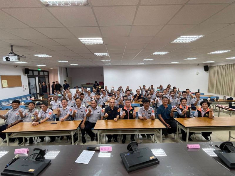 組長謝忠銘說明,感謝義警中隊長李志文及中隊幹部副中隊長王建泰、魏榮士、張慶鴻、林錦坤、趙壽山、黃俊霖,幹事吳永清、莊麗娟,書記辛宗亮等協助本次訓練,課程分別有義勇警察執勤安全與協勤要領及詐騙及毒品犯罪預防宣導;專業領域緊急救護實作訓練(含心肺復甦術及止血帶操作)等課程,温分局長在年度工作重點提示內政部警政署近期工作重點,藉由本次常年訓練,使協勤民力了解工作任務,警民共同維護地方治安。