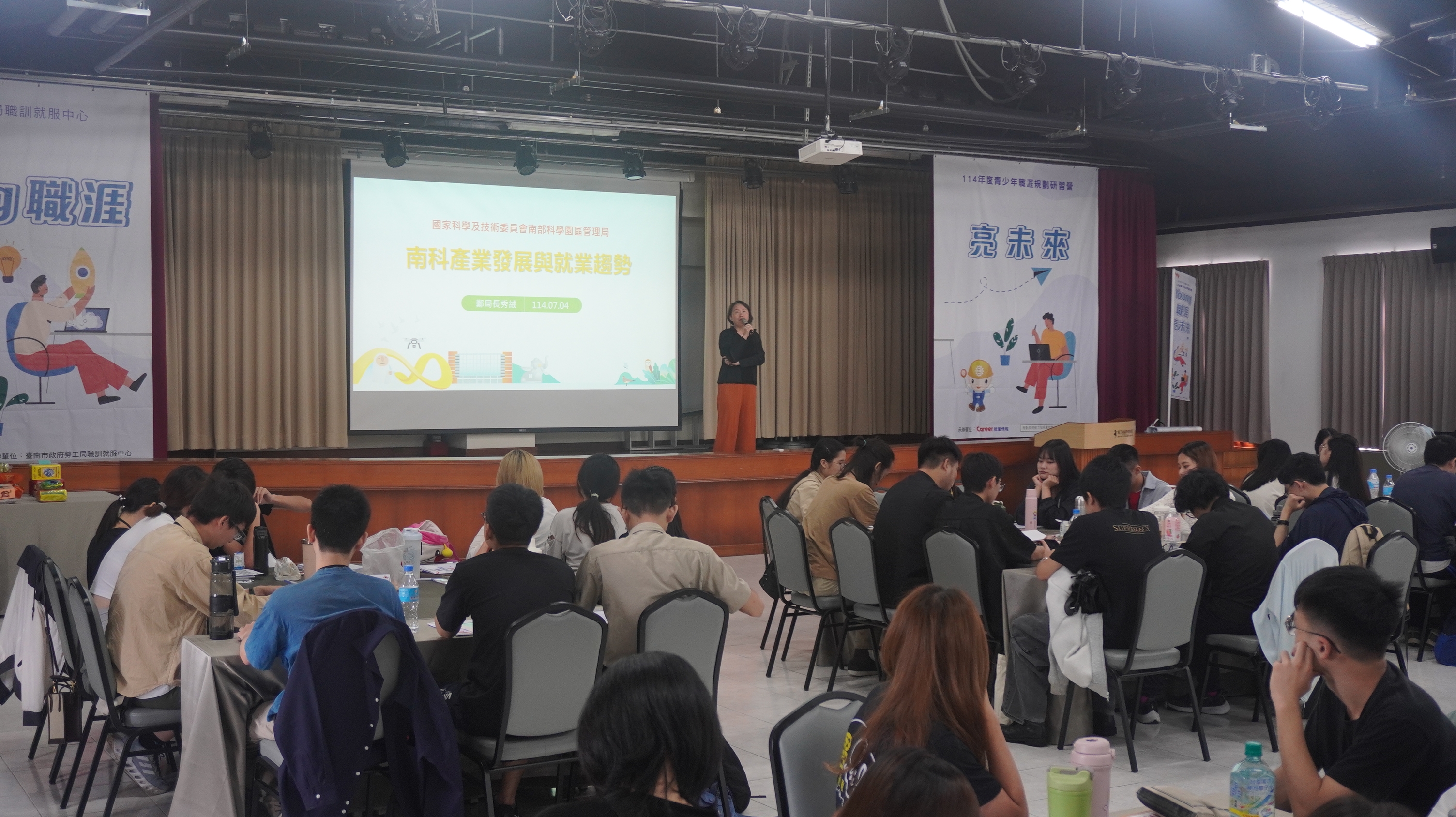 本次研習營也邀請國家科學及技術委員會南部科學園區管理局鄭秀絨局長,為學員講解在臺南就業的優點,並針對臺南的產業優勢及就業方向提供未來職涯規劃的方向。研習營亦透過創意簡報競賽來激發學員的團隊能力,不僅透過腦力激盪來了解職場上的重要法令及觀念的趨勢變化,更讓青年學生從中學習到溝通、協調、問題解決及團隊合作的重要性。今年的創意簡報競賽主題包含「數位科技與AI對工作的影響」、「青年創業與永續價值」、「非典型就業與勞動保障」、「職場多元共榮(DEI)文化」以及「企業ESG與職場選擇」等議題,不僅呼應SDGs永續發展目標、順應國際潮流,更反映出近年來政府對友善職場的重視。此外學員簡報的呈現方式不僅更加多元,從精美的簡報作品到表演生動的情境劇,強調各種議題的重要性,並且讓其他人學習到不同團隊所具備的獨特性。