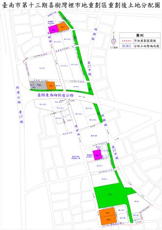 臺南市南區喜樹灣裡市地重劃區重劃分配結果訂於114年8月11日公告30天,請土地所有權人於公告期間至本市南區區公所閱覽相關圖冊,公告後預計114年第4季辦理土地登記,114年底辦理工程啟用及土地點交。