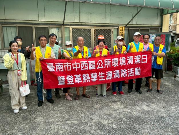 中西區公所鼓勵民眾共同響應及參與每月的「環境清潔日」,一起動手打掃居家內外環境,清疏屋後溝、清除小廣告及狗便清除,加強登革熱孳生源及髒亂點及巷道雜草環境清理,並動員志工伙伴協力進行里內環境整理服務,期能帶動民眾自主參與里、社區環境清潔整理維護,改善區里環境衛生,減少病媒蚊孳生,以提升居家生活環境品質,營造健康清淨的生活家園,以達清淨家園環境美化及登革熱防治的雙重功效。
