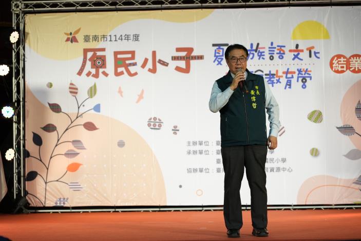 市長黃偉哲表示,臺南是多元族群共榮的城市,市府長期致力於原住民族語言與文化的傳承。透過沉浸式學習,學生能從日常體驗中自然習得族語、理解文化價值。欣見孩子們在結業式中,以歌謠與戲劇自信展現成果,更期許能將所學延伸至生活,成為文化傳承與推廣的重要力量。