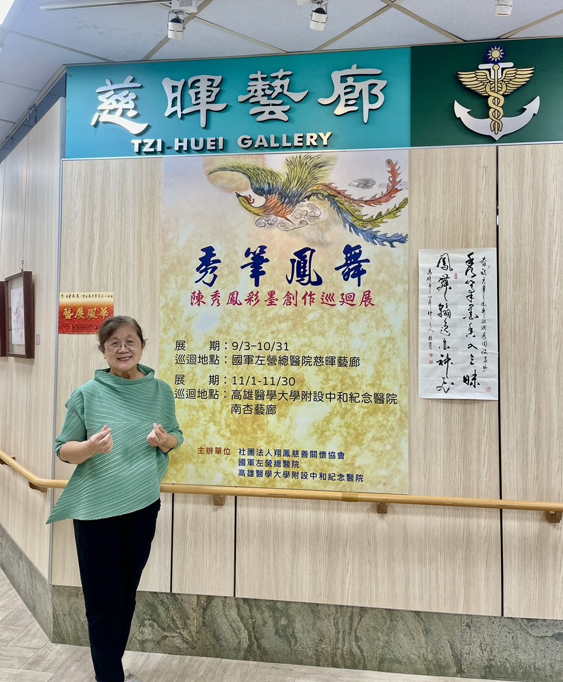 【記者林意雯/高雄報導】 「秀筆鳳舞~陳秀鳳彩墨創作巡迴展」配合9/3軍人節在國軍左營總醫院(原海軍總醫院)慈暉藝廊展出,展至10/31。歡迎民眾一起來參觀感受彩墨藝術之美!