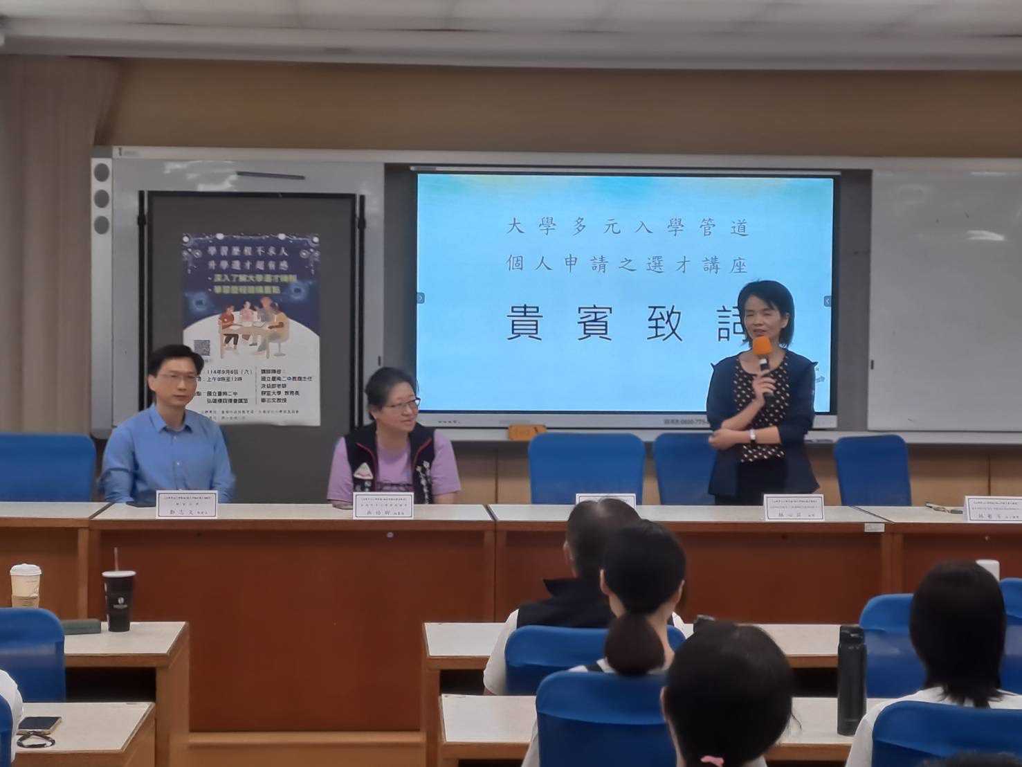 隨後由靜宜大學教務長鄭志文,以「大學選才這樣看」為題,從大學端的角度剖析選才思維。鄭教務長指出,108課綱後的選才更重視學生的「學科基礎、態度與潛力」,大學在審查時會兼顧修課紀錄、成果作品、多元表現與學習自述。他也分享了「三重二不」的原則──重視核心能力、重視學習活動與真實性;不是所有項目都要齊備,也不是件數越多越好,而是要展現學生的特色、能力與真實反思。