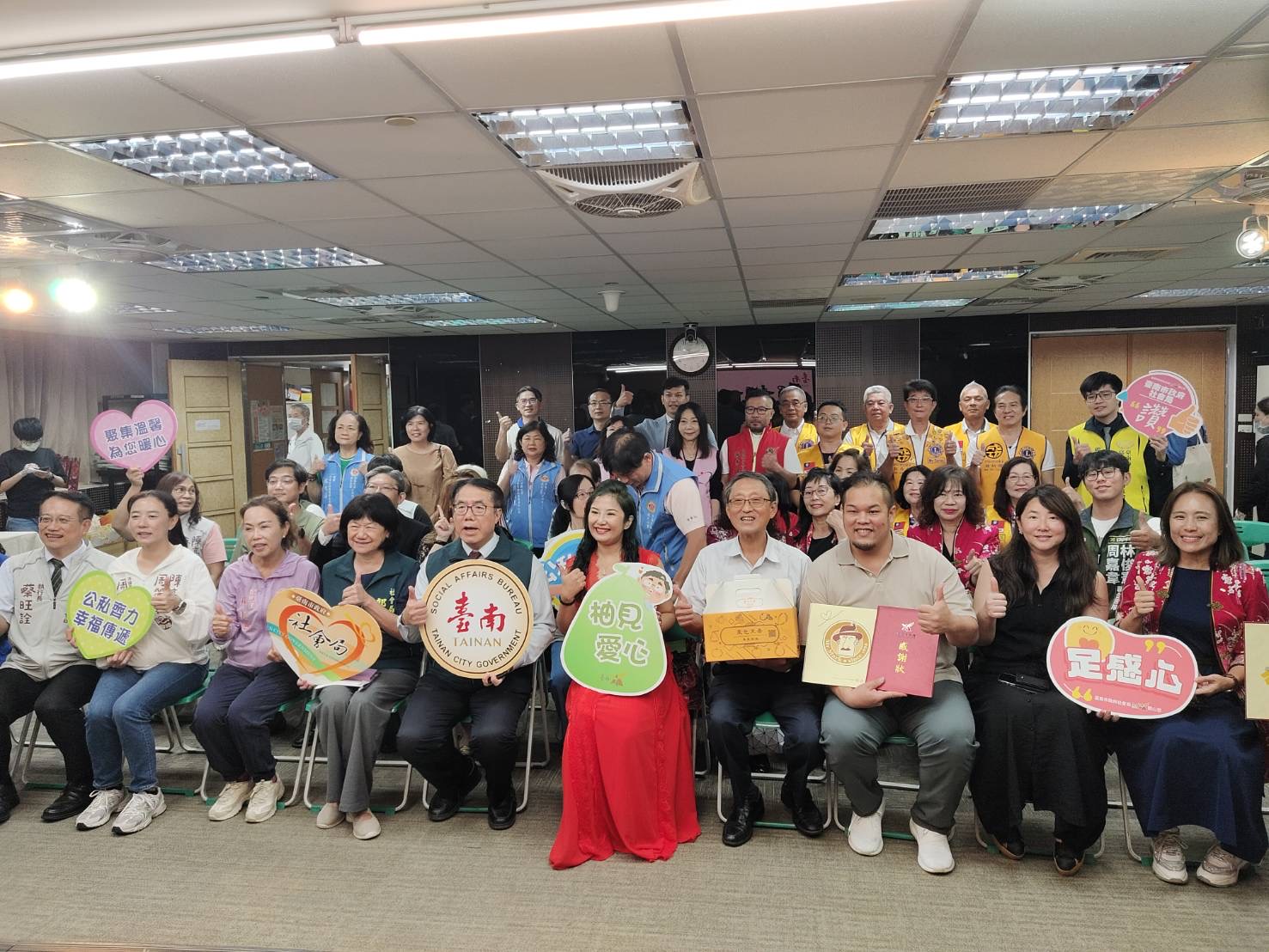 【記者郭忠淵/台南報導】 為響應南市府照顧弱勢為優先之理念,有「青果西施」美名的台南市百業國際矅進學會創會理事長顏嘉縈,每逢中秋佳節皆發起「文旦禮盒買一捐一」公益活動,至今已連續辦理5年,今(114)年更攜手馬可先生食品企業股份有限公司,共同捐贈1,000盒禮盒(內含文旦及餅乾)給台南市弱勢家戶。(19)日於永華市政中心舉行捐贈儀式,由市長黃偉哲代表受贈並回贈感謝狀。