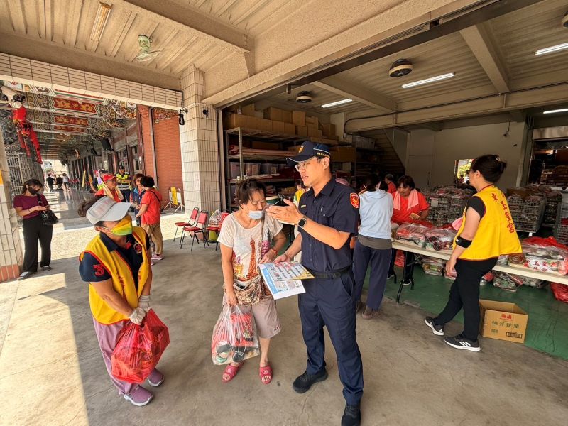 所長連偉翔特別把握玉皇宮中元普渡信眾齊聚時機,透過真實案例向民眾宣導防詐技巧,提醒大家保持警覺心,不輕信陌生電話、郵件或簡訊,不提供銀行帳戶或個人資料,並將「一聽二掛三查證」口訣牢牢記住,善用165專線查證,以守護自身財產安全。
