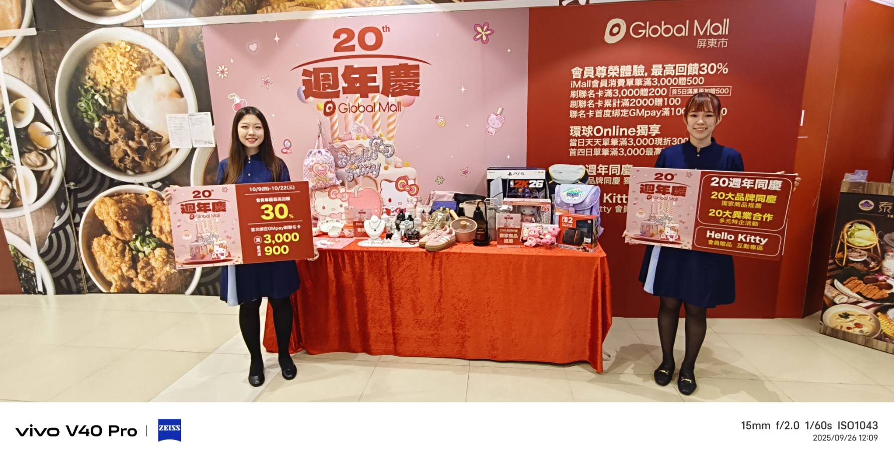 【記者戴英薇/屏東報導】 Global Mall屏東自10月9日至22日展開20週年慶,主打消費滿額回饋最高30%、GMpay首綁送900元,還有20大品牌同慶優惠。除可愛吸睛的Hello Kitty聯名活動外,更迎來「壽司郎」、「31冰淇淋」、「宮武讚岐烏龍麵」首度插旗屏東,全面引爆話題。週年慶購物 最高回饋30% 會員點數放大抵