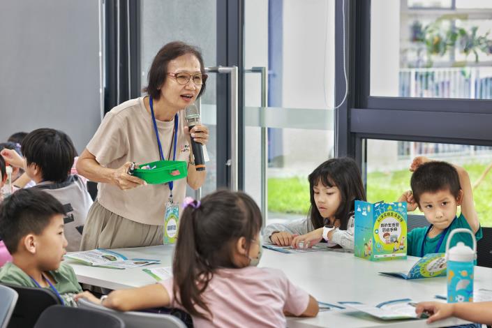 「淨零綠生活營」則由新北市三峽區中園國民小學輔導主任梁哲霖及臺南市環境保護局環境教育志工謝蘇美蓮共同帶領,以「讓淨零科技融入你的日常生活!」為主題,透過故事引導與遊戲互動,讓學童了解能源轉換與綠能應用的重要性,親手製作太陽能電動風扇,在實作過程中體驗太陽能轉換電力的原理,從玩樂中理解綠色科技的魅力,並培養珍惜能源與愛護地球的生活態度。