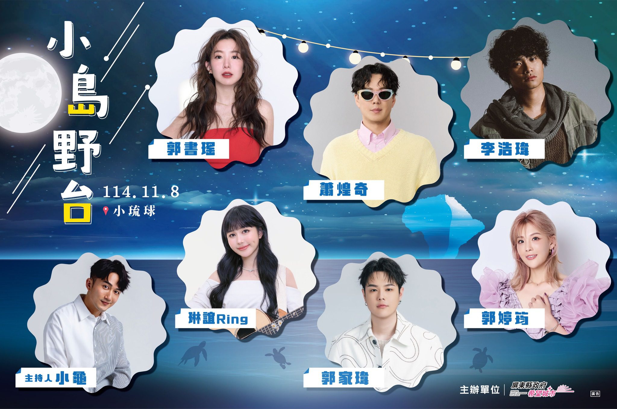 【記者范家豪/屏東報導】 為讓每年吸引上百萬觀光人潮的小琉球有更多元的旅遊體驗,屏東縣政府將於11月8日在小琉球停機坪推出全新品牌活動「小島野台」,活動邀請金曲歌王蕭煌奇、李浩瑋、全方位藝人郭書瑤、療癒女聲琳誼、黑色旋風郭婷筠及郭家瑋等輪番開唱,現場聚集超過35攤在地美食、街頭藝人與特色市集,並設置小朋友專屬氣墊區,歡迎全家大小一起盡情放電,享受最Chill的海島假期!