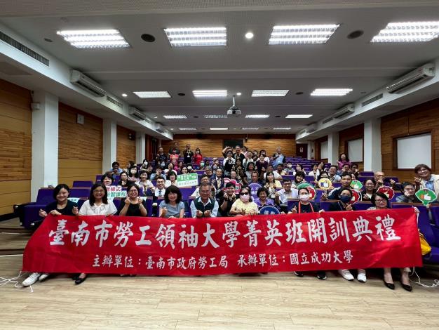 為打造市長黃偉哲「希望家園」的施政願景及提升在職勞工職能及競爭力,勞工局與國立成功大學合作辦理「勞工領袖大學菁英班」,今(27)日開訓由國立成功大學推廣教育中心主任辛致煒、勞工局局長王鑫基、勞工局主任秘書陳美顏、職訓就服中心主任梁偉玲、大台南總工會副理事長陳美靜等共同出席,勉勵勞工領袖們踏進「成功大學」的知識殿堂,持續精進學習。