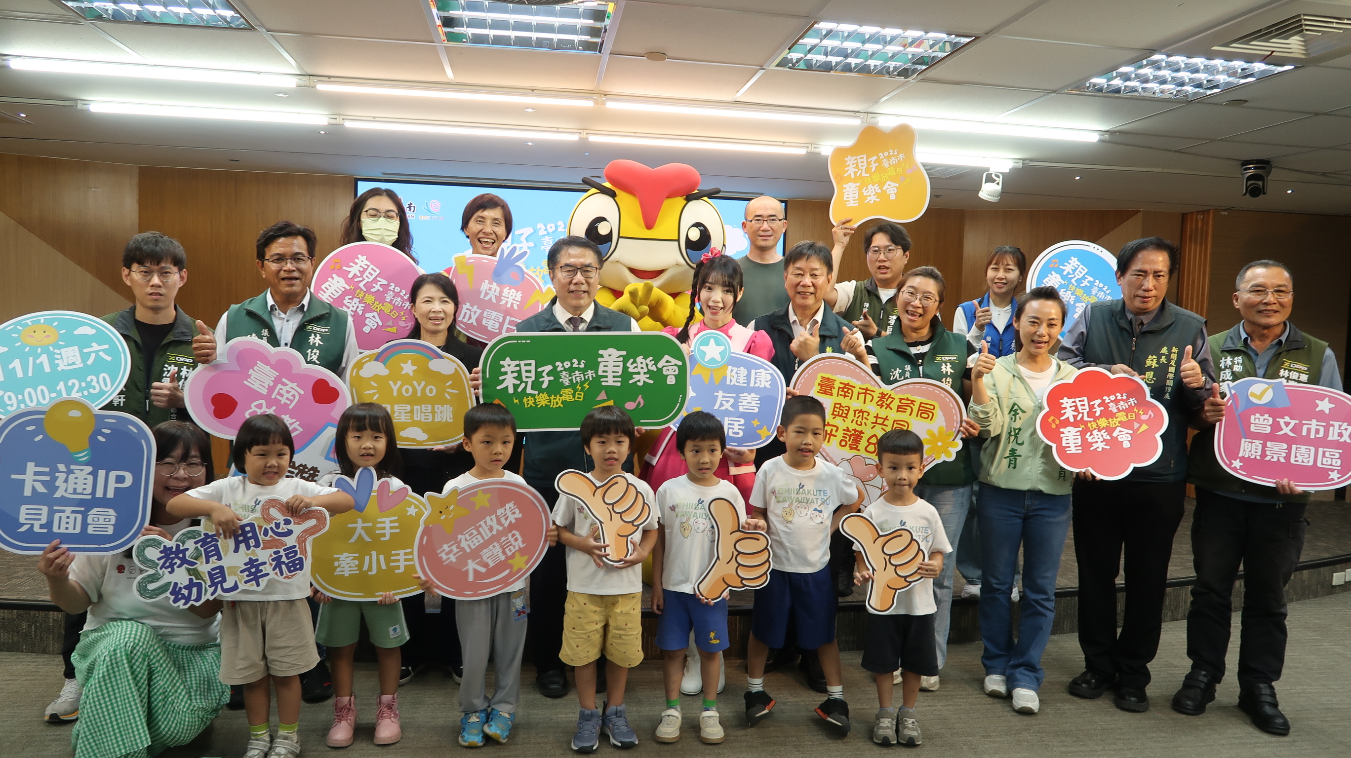 2025臺南市親子童樂會將於11月1日(星期六)上午9時至中午12時30分,首次在曾文市政願景園區熱鬧展開,臺南市政府今(27)日召開記者會為活動暖身。活動邀請YOYO家族的哥哥姐姐與多位超人氣卡通明星,帶來活力四射的動感唱跳表演,並由市長黃偉哲帶領大小朋友一起「快樂放電」。現場還有市府各局處精心設計的多元特色攤位,歡迎市民朋友踴躍參與,共度充滿歡笑與活力的親子時光。