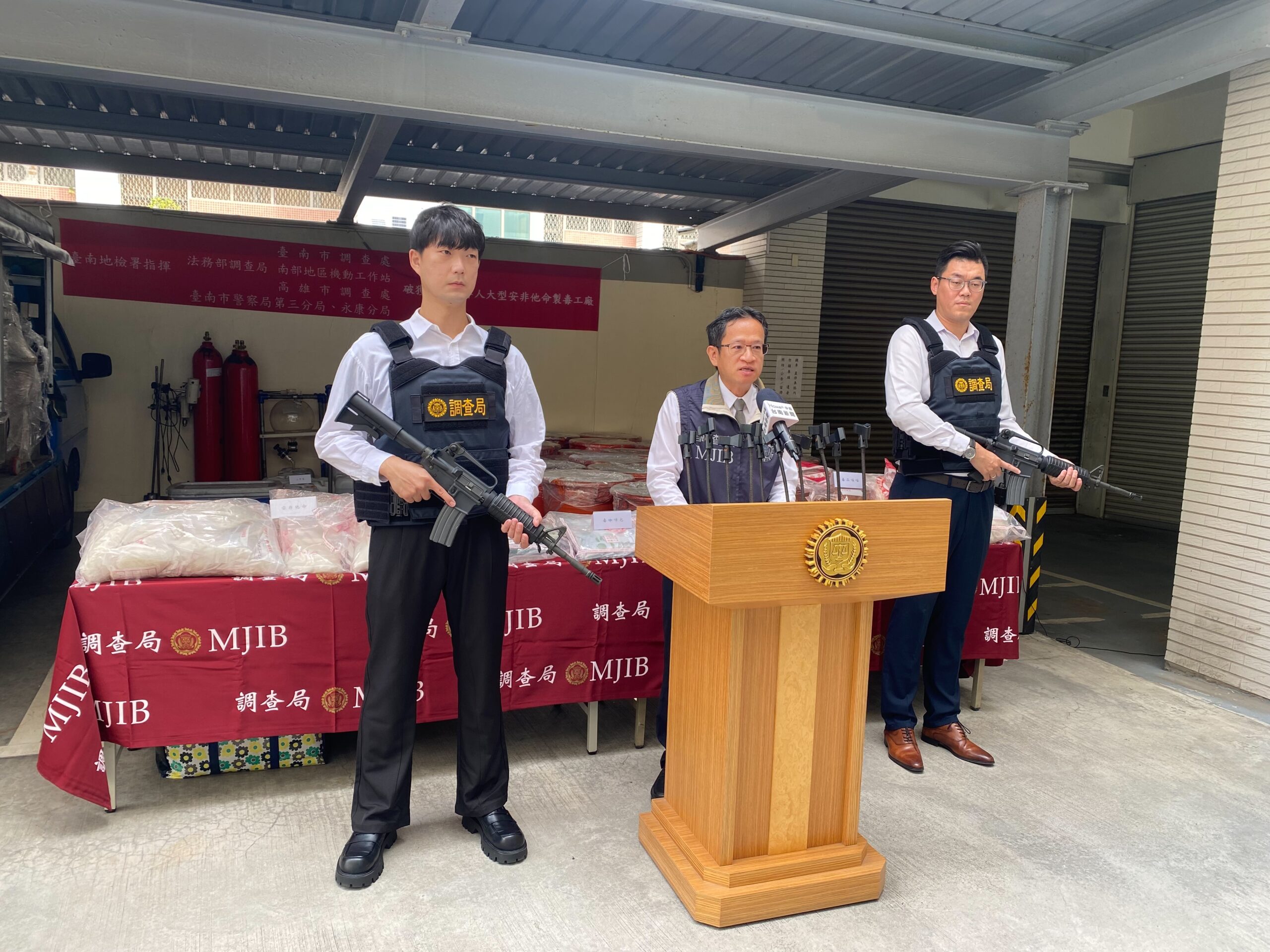 法務部調查局台南市調查處和南部地區機動工作站、高雄市調查處、台南市警第三分局及永康分局組成專案組,在台南地檢署檢察官陳琨智指揮下,於今年6月13日在台南市台江國家公園附近某處魚塭,破獲大型甲基安非他命等製毒工廠1座,查扣第二級毒品甲基安非他命及大麻約32.2公斤;第三級毒品愷他命約4.2公斤、4-甲基甲基卡西酮(俗稱:喵喵)約134公斤;第四級毒品先驅原料(假)麻黃鹼及1-甲基苯基-1-丙酮約50公斤,各級毒品合計逾220公斤,並扣得大批製毒設備、原料及販毒所得現金台幣456萬餘元,並拘提王姓主嫌及陳姓、力姓、孫姓等4人到案,經向台灣台南地方法院聲押獲准,全案依違反毒品危害防制條例移送台南地檢署偵辦,經檢察官偵結後於近日提起公訴。