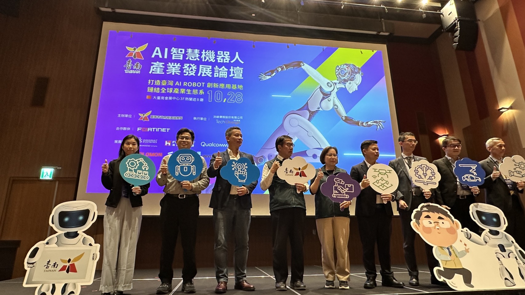 由臺南市政府經濟發展局主辦的「AI智慧機器人產業發展論壇」今(28)日下午於大臺南會展中心盛大登場,邀集鴻海、高通、新代、所羅門、發那科、UNIVERSAL ROBOTS、達梭系統等國內外重要企業與學研專家齊聚臺南,共同探討AI智慧機器人產業的技術創新與全球發展趨勢,展現南臺灣在AI產業鏈中的策略地位與發展潛力。臺南市長黃偉哲致詞為論壇揭開序幕,國家科學及技術委員會主委吳誠文特別錄製影片致詞,表達對臺南推動AI機器人產業生態系的高度重視,顯示中央與地方攜手推動智慧科技發展的共同決心。