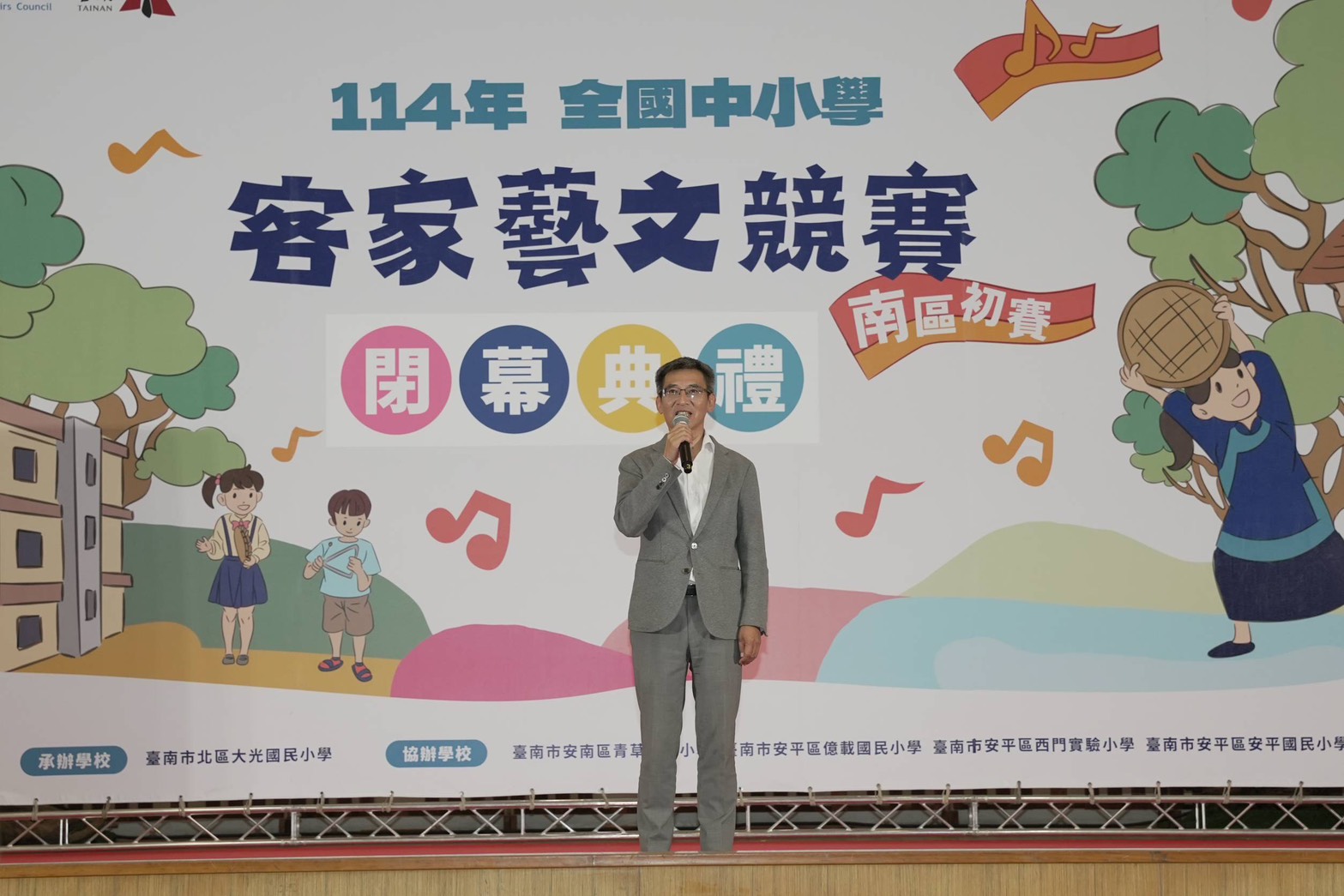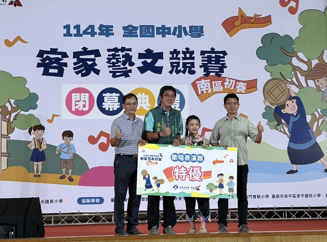 市長黃偉哲表示,語言的生命在於被使用、被聽見,唯有在日常交流與自然對話中,語言的力量才能被真正喚醒。這場比賽讓孩子們能將課堂上學到的語言化為舞台上的表達,透過歌聲、故事與戲劇讓文化發光。每一場演出背後,都凝聚著師生的努力與家庭的支持。期盼在競賽之外,大家都能讓客語走進生活,讓「講客語」成為自然、溫暖又值得驕傲的日常風景。