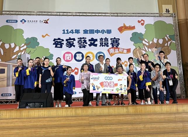 「114年度全國中小學客家藝文競賽南區初賽」今(1)日於臺南市慈濟高中熱鬧登場,由臺南市政府教育局承辦,以滿滿熱情歡迎來自嘉義、高雄與屏東等縣市的62所學校、超過1,000位國中小及幼兒園師生共襄盛舉。參賽學生以歌唱、戲劇與口說藝術等多元形式展現客語之美,現場氣氛熱烈、洋溢青春與文化自信。獲得特優隊伍將於12月6日前往高雄市參加全國總決賽。