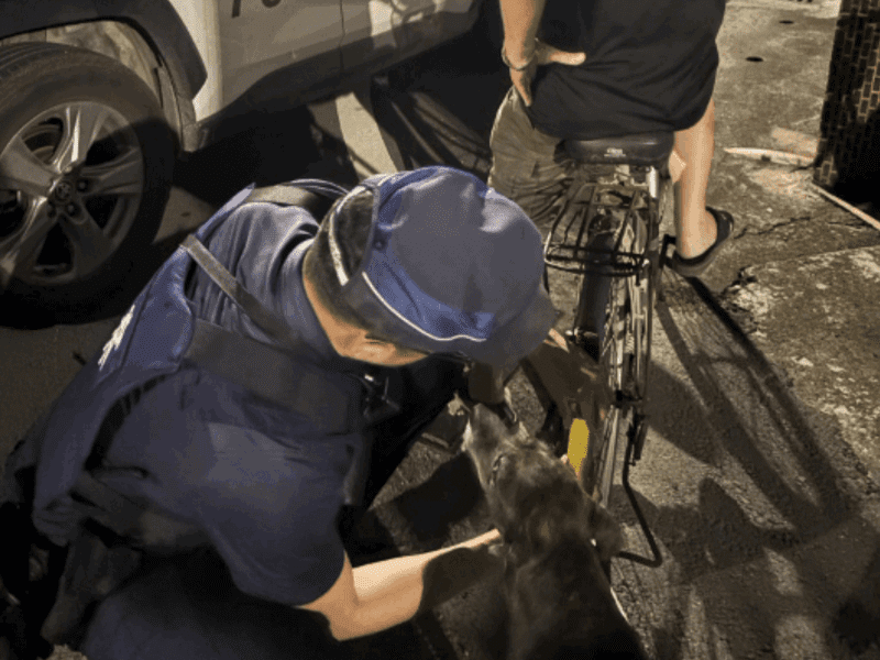 【記者何勁陞/內埔報導】 屏東縣政府警察局內埔分局萬巒分駐所警員羅家坤、簡欣筠,日前夜間11點半左右,在巡邏行經萬巒鄉復興路段時,發現一名年長老翁騎乘自行車,但該輛單車並無反光設備,辨識度極低,如行駛於燈光昏暗、照明不足之路段,恐生風險,員警遂主動上前關懷。