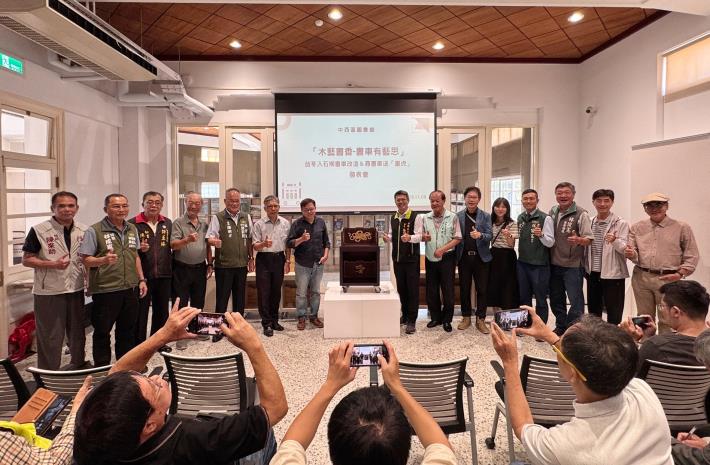 中西區圖書館特別邀請傳統木雕師劉進文將館內6台閒置木製收納車進行改造,6日上午舉行「木藝書香-書車有藝思」發表會,現場貴賓共同揭幕亮相全臺首座「茄苳入石柳」小書車。即日起至中西區圖書館尋找書車,拍照上傳就有機會獲得劉進文木雕師特製的「書虎」虎爺藝術品,邀請全台朋友一同走進古蹟圖書館閱讀欣賞「茄苳入石柳」工藝之美。