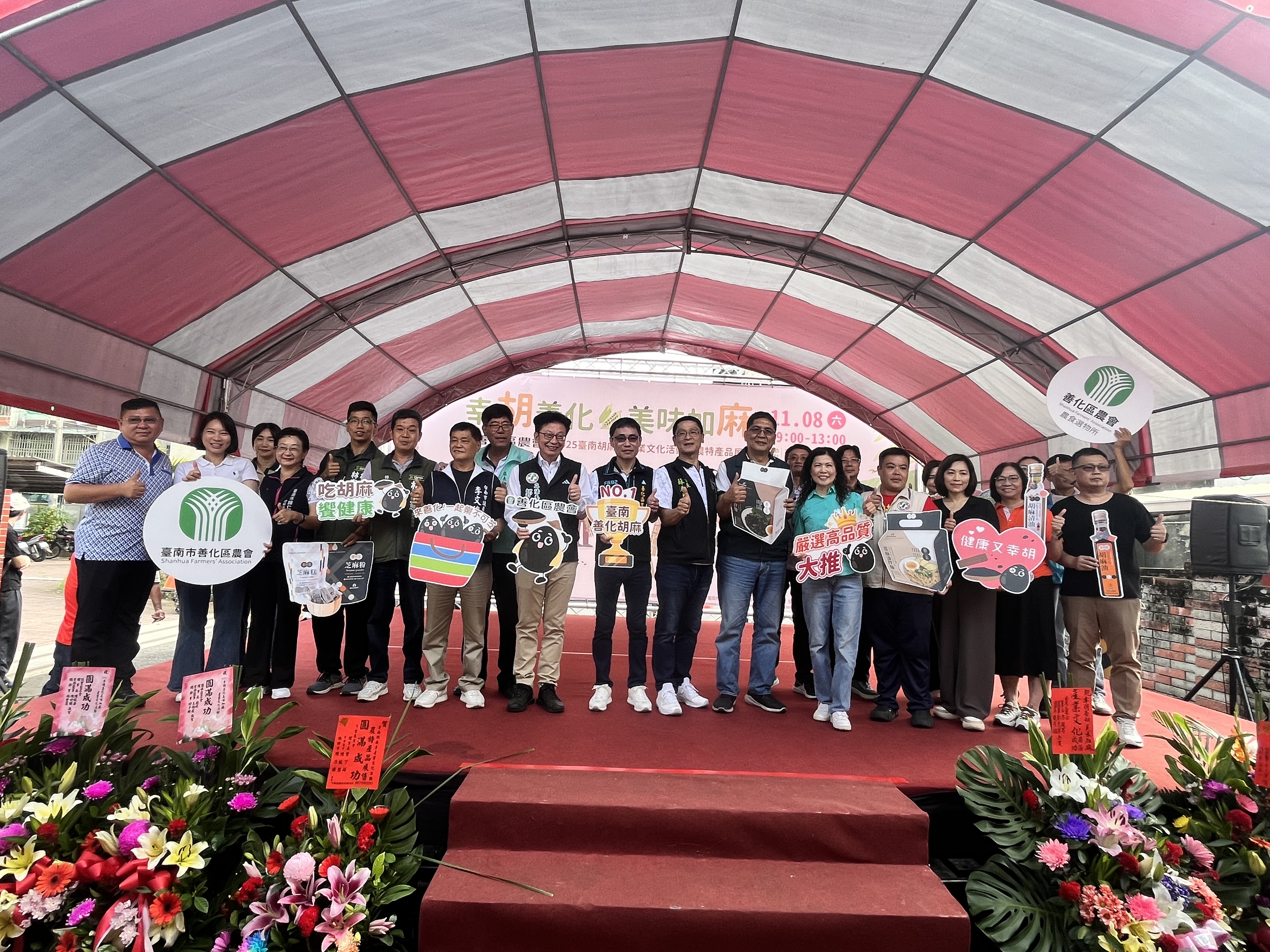 2025臺南胡麻季農業產業文化活動,今(8)日在善化區農會熱鬧登場,為今年胡麻季揭開序幕。市長黃偉哲表示,善化是臺南重要的胡麻產區之一,適逢產季,誠摯邀請全國民眾前來共襄盛舉,品嚐香氣濃郁、風味獨特的在地胡麻,感受農業與美食交織的幸福滋味。