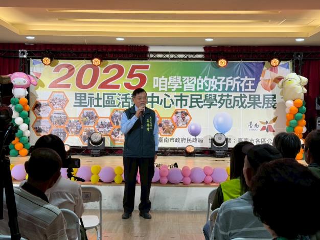 臺南市政府民政局為推動里社區活動中心市民學苑學員相互交流及經驗分享,今(8)日上午於東山區東山國小文教活動中心舉辦「2025咱學習的好所在-里社區活動中心市民學苑成果展」。本次活動匯集各區學員的學習成果,現場不僅有活力四射的動態表演,更有精緻豐富的靜態創作,展現市民朋友豐沛的學習熱情與創造力。
