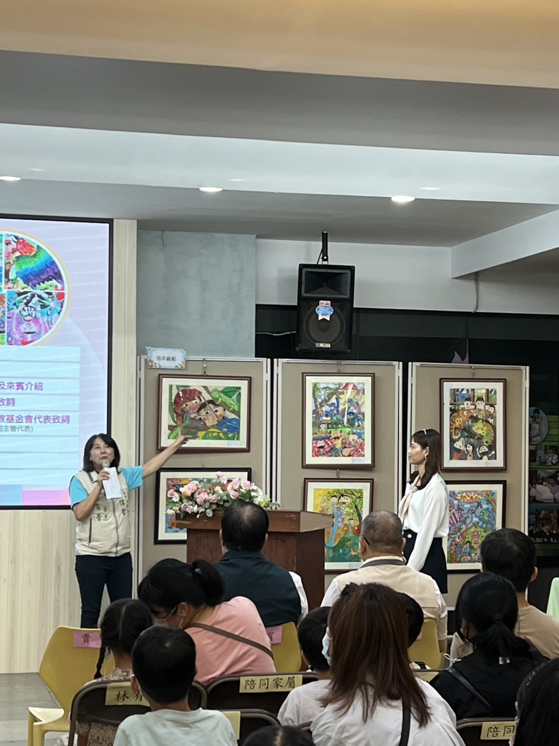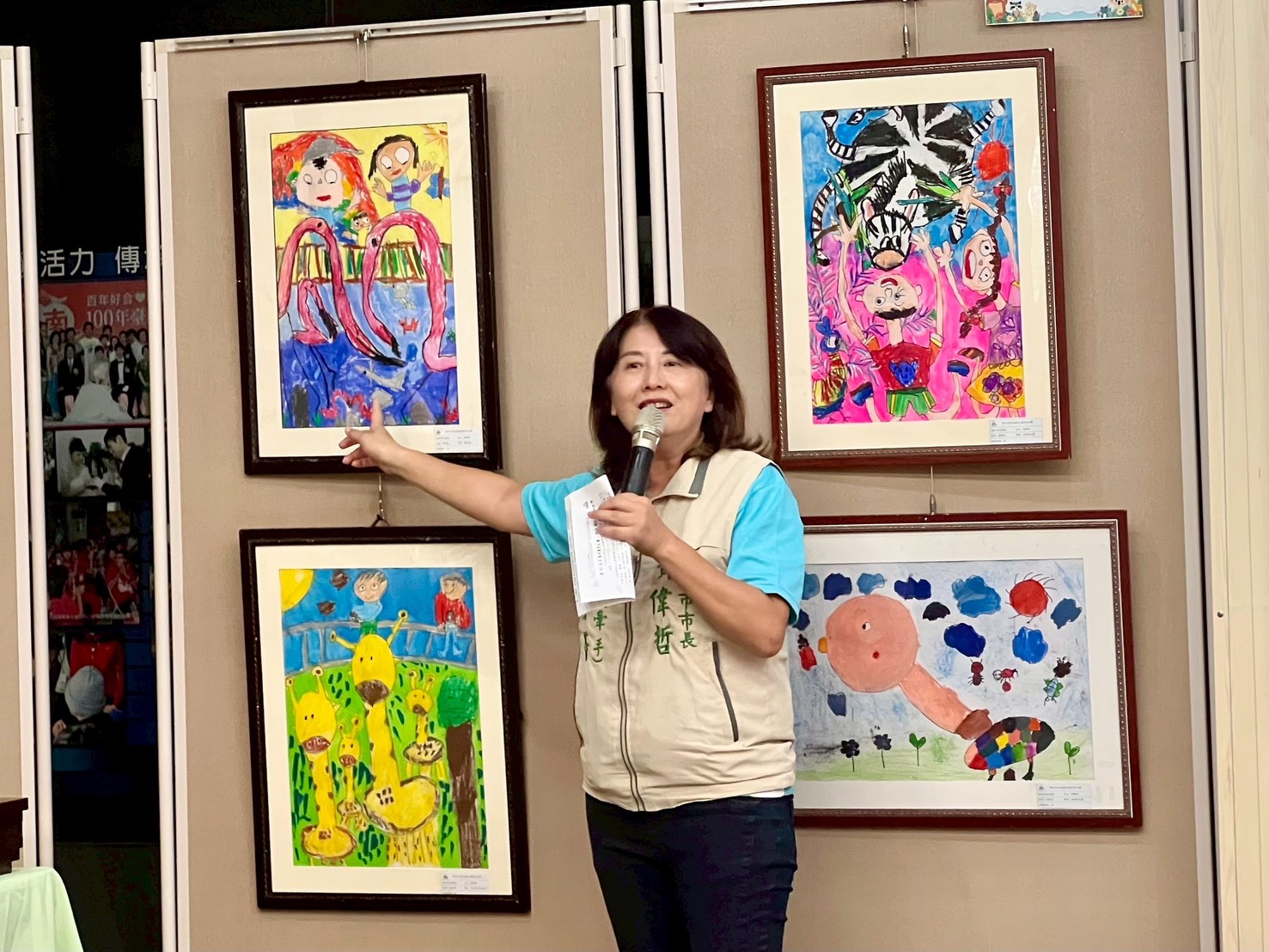 代表市長出席的劉育菁夫人在頒獎時分享她多年的教學經驗,她觀察到喜愛繪畫的孩子往往具有敏銳的觀察力與無限創意。這次得獎作品色彩豐富鮮明,人物與動物表情生動活潑,充分展現純真的童趣。劉夫人也歡迎民眾把握機會,前往市府民治市政中心一樓展覽大廳欣賞展出至11月底的優秀作品。