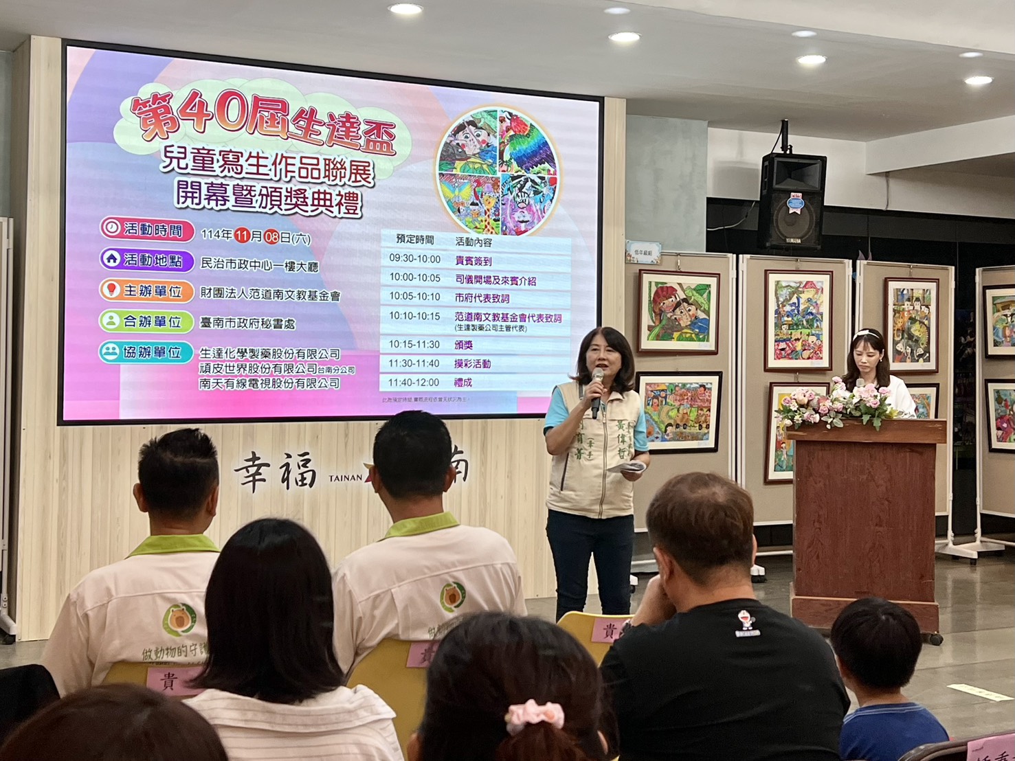 第40屆生達盃兒童寫生比賽頒獎典禮於11月8日上午10時在臺南市政府民治市政中心一樓藝文展覽大廳舉行。現場湧入眾多家長攜帶孩子出席,場面溫馨熱鬧,親子共度美好時光。