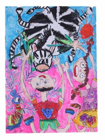 高年級組:陳穎芊〜構圖完整、色彩大膽艷麗,充滿動物狂歡的歡樂氣息