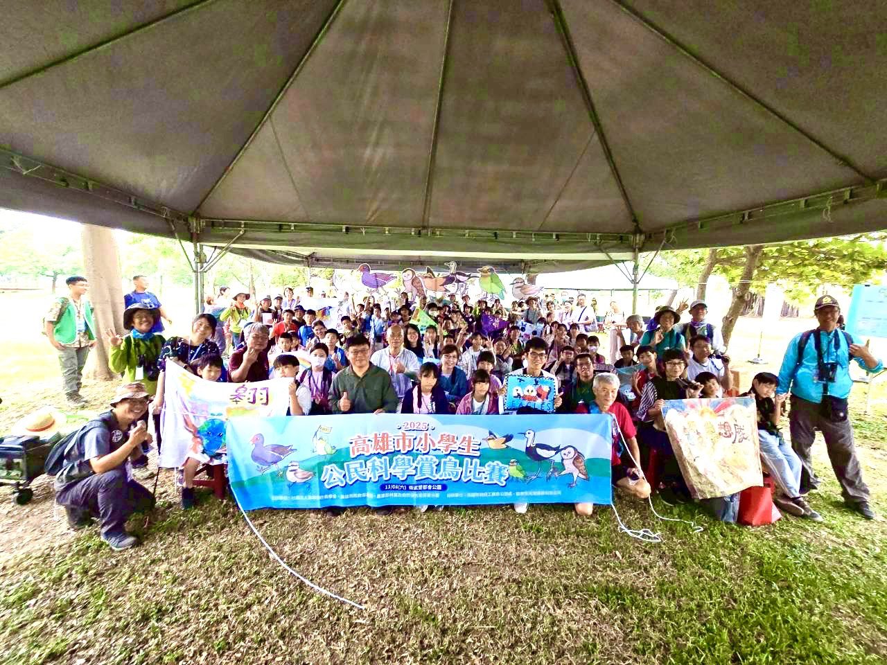 由高雄市野鳥學會攜手高雄市農業局及林業保育署屏東分署,日前11/8日(六)在衛武營都會公園舉辦首屆「高雄市小學生公民科學賞鳥比賽」,吸引全市 11 所國小、16 隊、54 位學生參與。活動當天家長、老師與志工齊聚,現場近百人走入公園綠地,以「公民科學」方式共同紀錄生態。