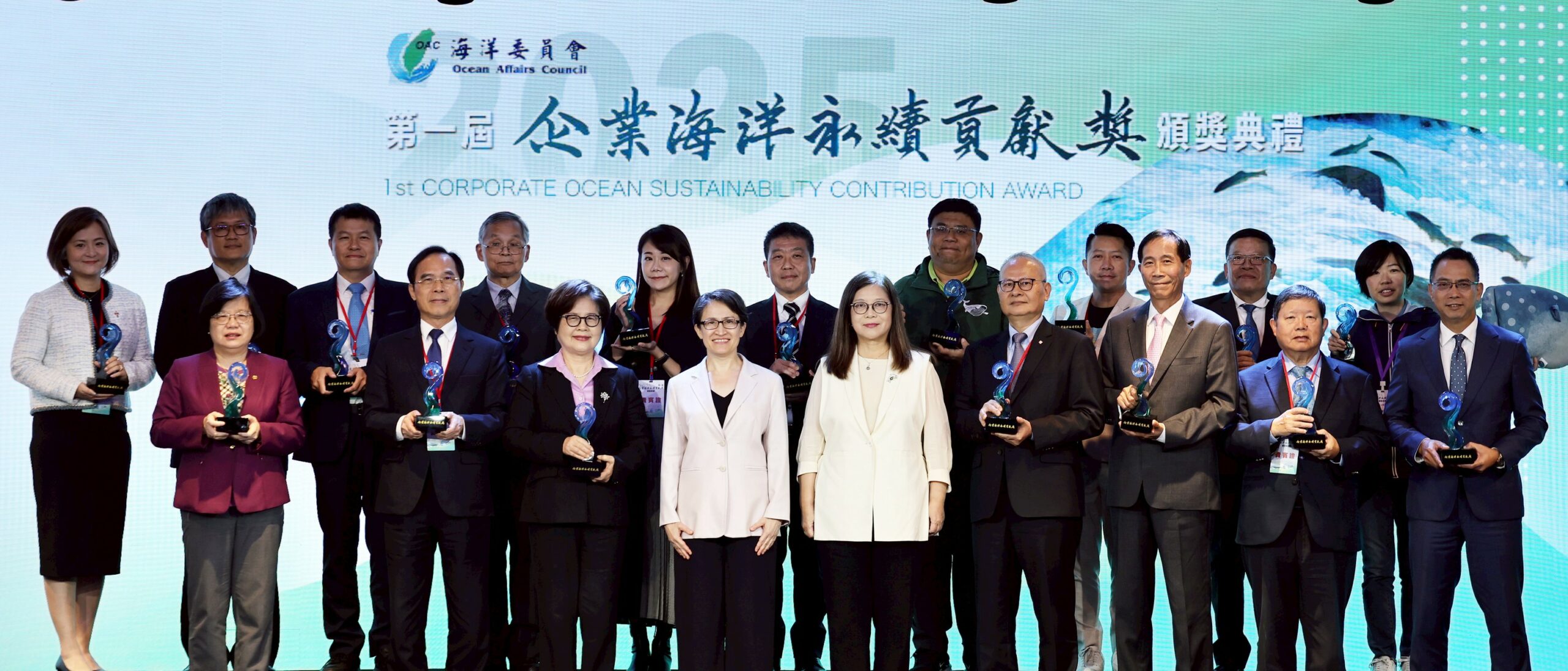 海委會主委管碧玲表示,發展海洋ESG,正是臺灣企業積極願意對世界做出貢獻的一條新路徑,為了讓更多臺灣企業的力量,開啟一條全新的「海洋ESG」之路,特別感謝金管會彭金隆主委與證交所林修銘董事長的大力支持,讓海洋保育的實踐,正式納入「公司治理評鑑指標」,成為推動海洋ESG發展的重要里程碑。同時,為了讓企業不只是被規範,而是主動以榮譽與責任,推動海洋永續。海委會首度設立「企業海洋永續貢獻獎」,表揚在海洋保育領域走在最前線的企業,讓企業的努力可以被社會看見、被國家肯定。