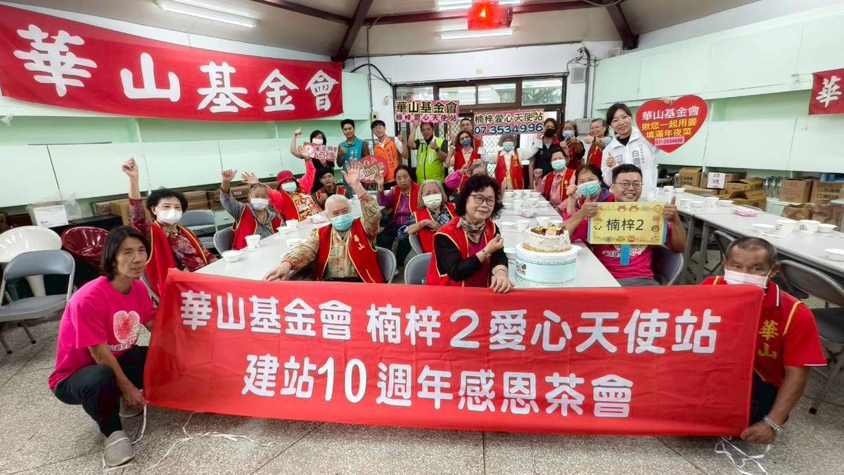 【記者蘇莉湘 / 高雄報導】 華山基金會楠梓2天使站成立至今已屆滿10年,累積服務超過300位長輩。為感謝在地善士與義工們長期的支持,於今日上午9點30分在高雄市煉油廠員工子女非營利幼兒園舉辦「建站10週年感恩茶會」,邀請服務的11位長輩、善士及義工們前來同歡,並由吳阿嬤帶領幼兒園小朋友廚藝傳承,攜手做美食。